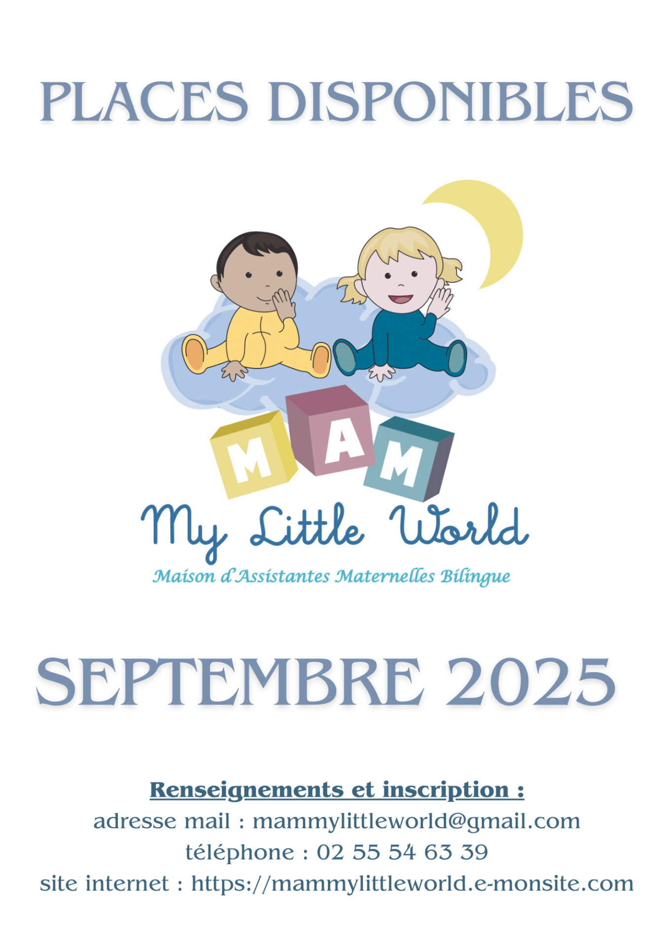 La MAM va disposer d'une place disponible en septembre pour un accueil 5 jours par semaine.